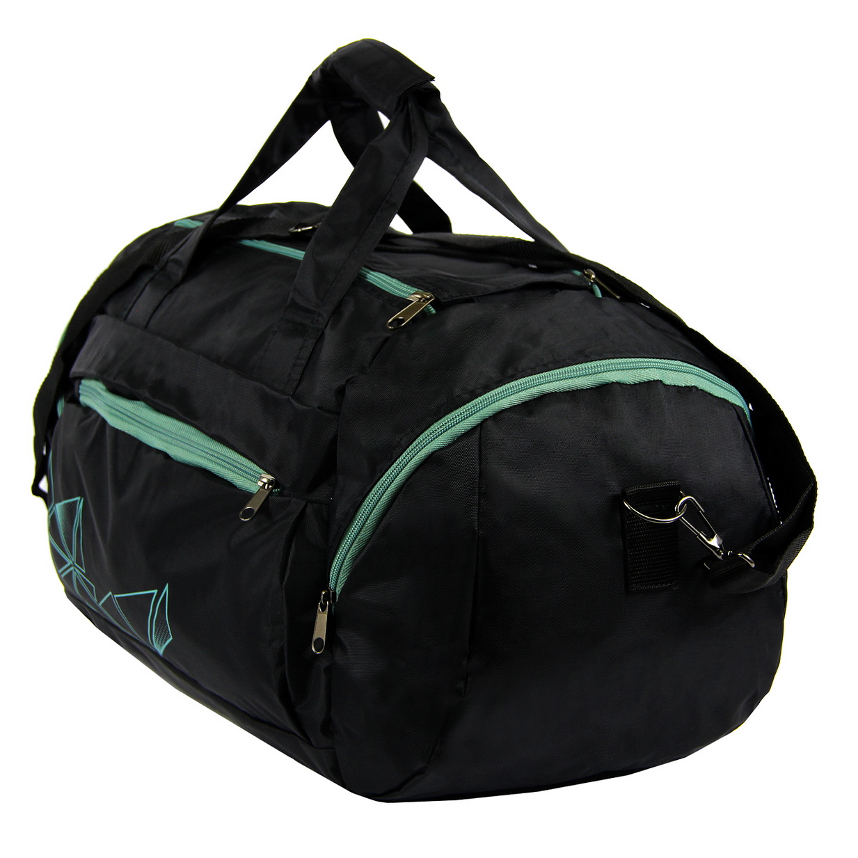 Малая дорожно-спортивная сумка предназначена для транспортировки личных вещей, изготовлена из прочной водоотталкивающей ткани. Имеется одно объёмное отделение, два боковых кармана на молнии, один карман на передней стенке. Ручки укреплены строчкой «зигзаг». Фурнитура простая металлическая. В комплекте длинный регулируемый ремень.